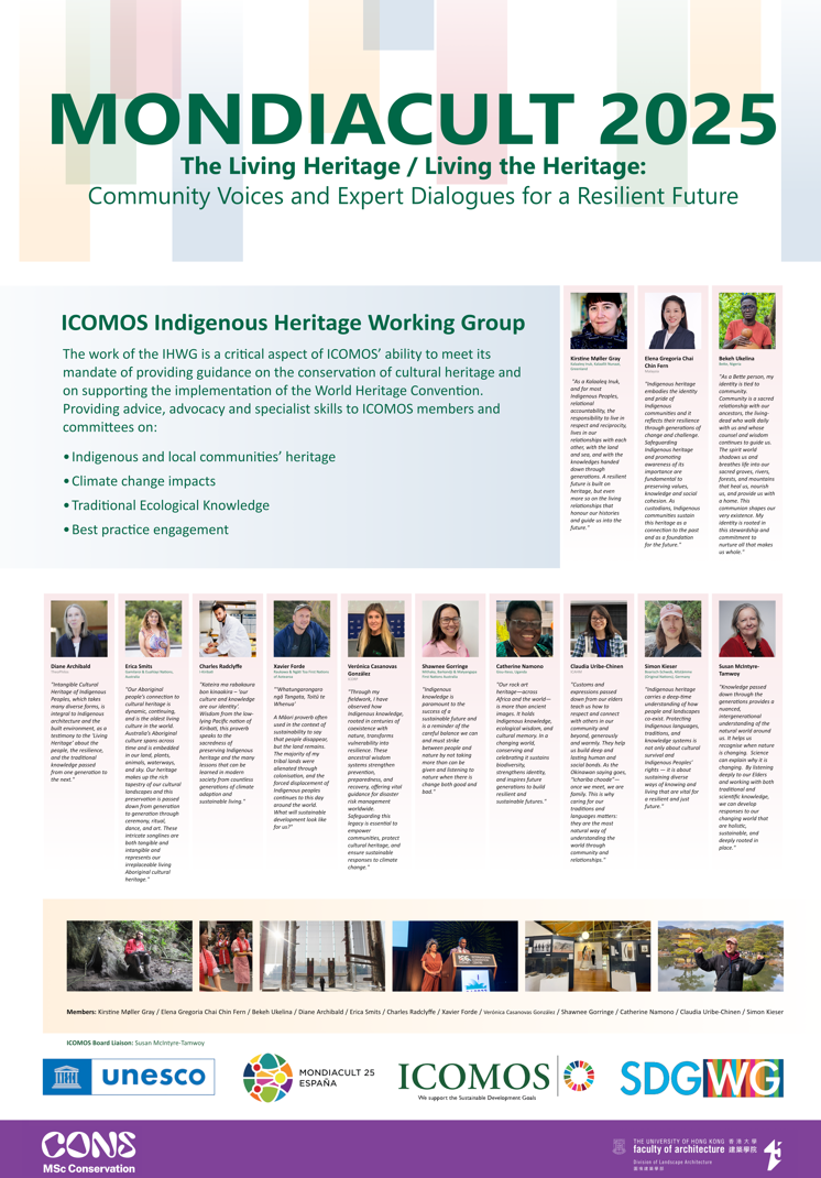 ICOMOS Indigenous Heritage Working Group have two Australian representatives; Erica Smits and Shawnee Gorringe with Susan McIntyre Tamwoy as the board liaison for the group. Recently the IHWG presented a poster at Mondiacult 2025 held in Barcelona.