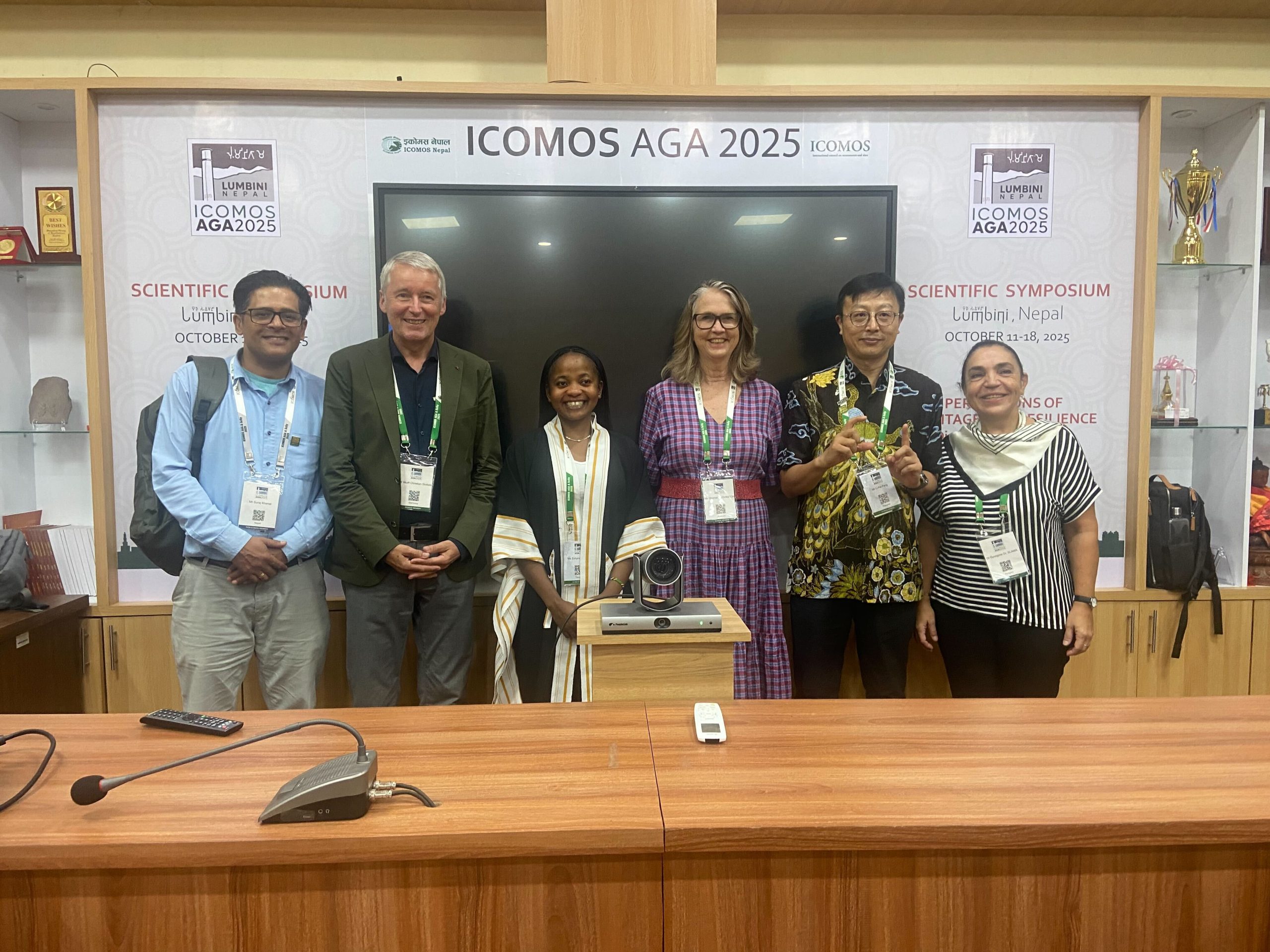 The ICOMOS Annual General Assembly (AGA) and Scientific Symposium 2025 took place over eight days in Lumbini, the birthplace of the Buddha, commencing on 11 October with the ICOMOS Bureau and Statutory meetings. The event concluded on 19 October in Kathmandu, Nepal, with a tour of greater Kathmandu to mark the 10^(th) anniversary of the Kathmandu earthquake. Over the course of two-and-a-half days, the Advisory Committee (AdCom) members (Presidents of the ICOMOS National Committees and the Scientific Council) discussed their activities and scientific advancements. The recommendations of the ICOMOS Regional Groups, led by the five ICOMOS Vice Presidents, focused on capacity building, collaboration, and current conflicts across the globe in Ukraine and the Arab region.