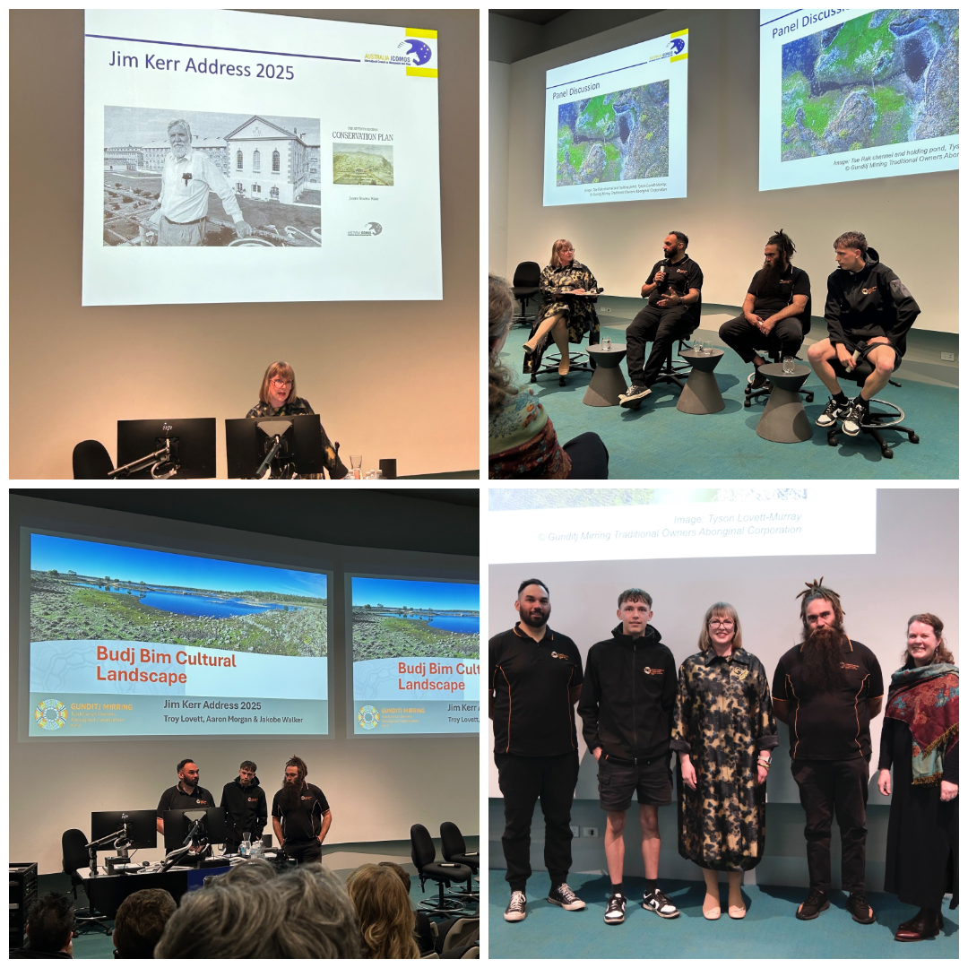 The Annual Australia ICOMOS Jim Kerr Address was held in Melbourne for the first time on September 11. Presented by representatives from the Gunditj Mirring Traditional Owners Aboriginal Corporation, the address reflected on the management of Budj Bim post the listing of the cultural landscape on the World Heritage List. The sold out audience heard from World Heritage Executive Officer Troy Lovett and World Heritage Rangers Aaron Morgan and Jakobe Walker as they discussed Caring for Country with both Traditional and contemporary methods to ensure the conservation and longevity of this exceptional landscape. Following the address a panel discussion was also hosted by Alix Hill from Storey and Ward. (Images: Felicity Watson & Rebecca Davies)